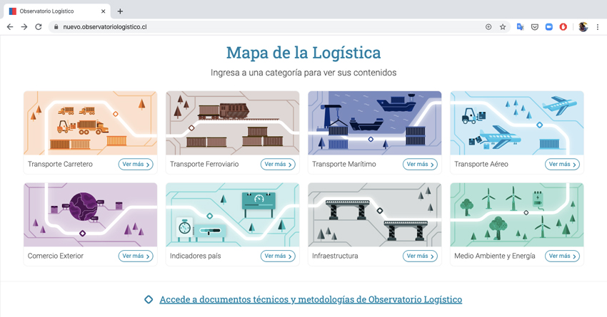 Asimismo, se cuenta con una sección donde se sociabilizarán las metodologías y procesos que se emplean para sus estudios y se podrá acceder a un glosario específicio sobre logísitica. Para el desarrollo de este nuevo sitio web se realizó un estudio de usabilidad, a partir de cual se rediseñaron las funcionalidades, visualizaciones y el orden de las secciones, para hacerlo más accesible e intuitivo. También, se robusteció el buscador- incorporando el motor Elasticsearch- y se generaron categorías de información similares, para facilitar encontrar y comparar la información.