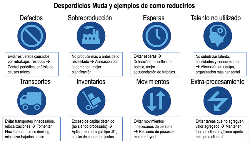 Para ello una solución exitosa, es la aplicación de la metodología Lean que enfrenta la problemática mediante la reducción de desperdicios tales como defectos, sobreproducción, inventario, talento humano no usado, transporte, inventario, esperas, movimientos innecesarios, procesamiento excesivo. La metodología Lean propicia una nueva cultura de hacer las cosas en la organización.