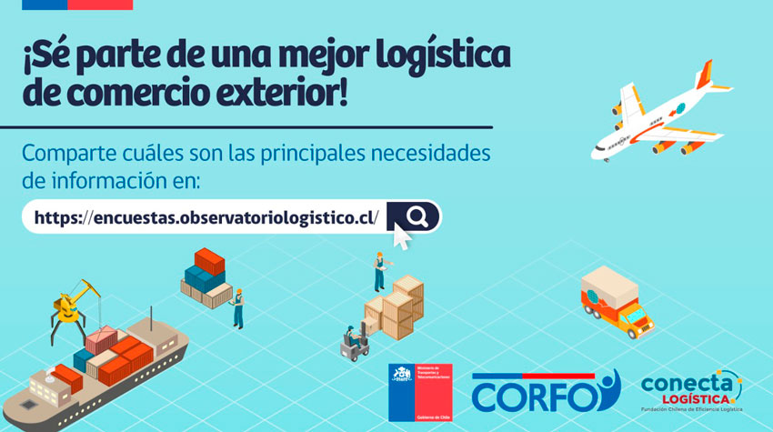 La consulta, que cuenta con el apoyo del Proyecto Fundación Chilena de Eficiencia Logística- Conecta Logística, se puede responder en encuestas.observatoriologistico.cl Los resultados principales serán compartidos en el sitio web www.observatoriologistico.cl