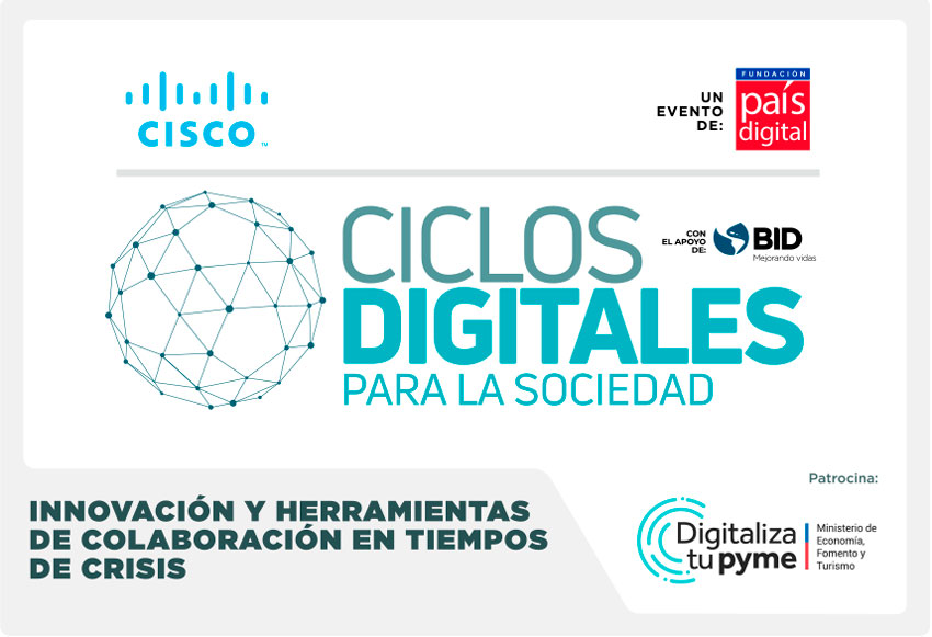 Entendiendo esta necesidad, Fundación País Digital junto a Cisco y el Banco Interamericano de Desarrollo (BID), con el apoyo de Digitaliza tu Pyme y el Ministerio de Economía, realizarán el evento online “Innovación y herramientas de colaboración en tiempos de crisis”. Esta actividad se enmarca dentro de los Ciclos Digitales para la Sociedad, serie de asambleas online con participación de expertos en la materia, que tienen como objetivo reflexionar hacia dónde se dirige la sociedad, cuáles son los desafíos y cómo prepararnos.