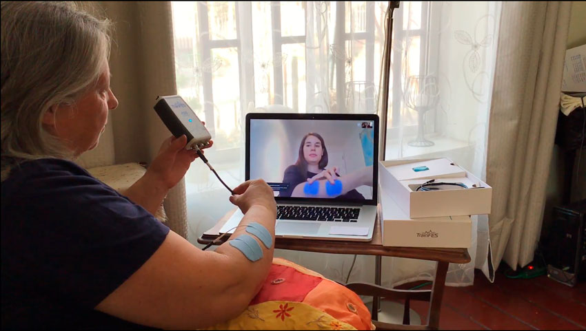 TrainFES es el único centro especializado en neurorehabilitación que está funcionando a distancia, debido a que posee un sistema de telerehabilitación que utiliza un dispositivo electrónico controlado por una aplicación y monitoreada por un equipo de profesionales, que incluye a terapeutas, médicos fisiatras, kinesiólogos, fonoaudiólogos y psicólogos, permitiendo que, durante la pandemia o el tiempo que sea necesario, las personas como Luis, puedan realizar su rehabilitación desde la casa.