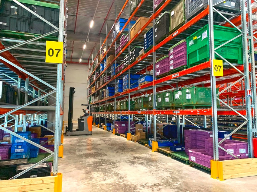 La solución de almacenaje instalada este año por AR Racking, rack selectivo para pallets, ofrece más de 6.000 posiciones. Con seis niveles de soporte, las estanterías de la nueva nave logística se elevan a diez metros de altura. Todos los niveles de soporte están equipados con mallas metálicas. Además, se ha instalado una solución para piezas pequeñas en los niveles inferiores de 41 de los módulos dobles, integrando en las estanterías una solución inteligente de almacenamiento y preparación de pedidos con 8.600 espacios para contenedores.