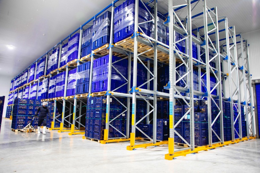 En la bodega de producto terminado, que se gestiona a una temperatura controlada de -30ºC, AR Racking ha instalado una solución de rack selectivo AR PAL, una solución diseñada para almacenar pallets de forma mecánica mediante grúas horquilla. Este sistema, de estructura modular, se puede adaptar fácilmente para optimizar el espacio y mejorar el coste de almacenamiento en las cámaras frigoríficas. En este caso se han instalado racks de doble profundidad sismorresistentes en cinco cámaras de frío dando como resultado 7.285 posiciones.