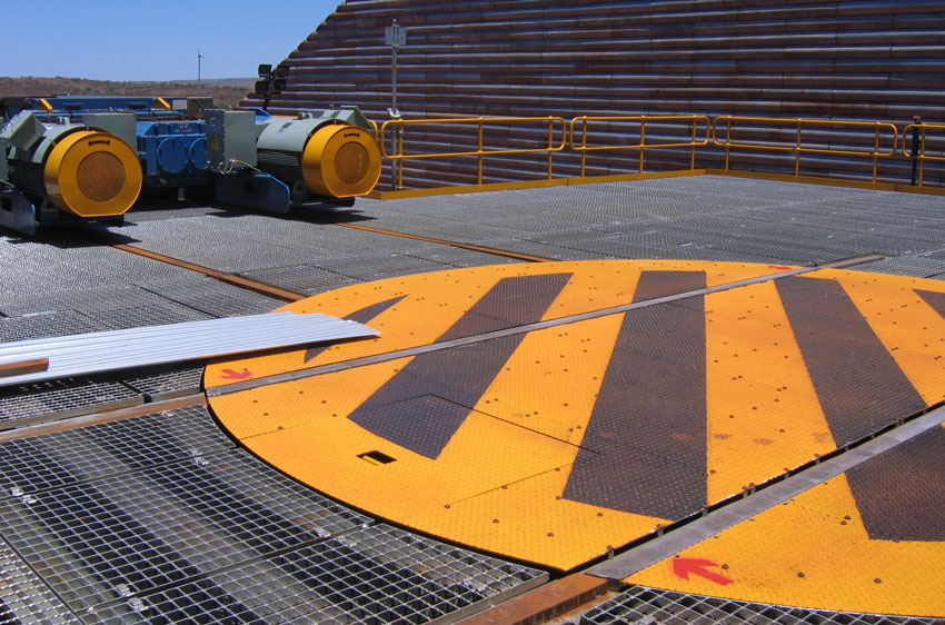 Por otro lado, está Australian Turntables, compañía dedicada a la fabricación e instalación de plataformas giratorias ubicables en la cara de la trituradora con capacidad para camiones tolva, plataformas para túneles y operaciones subterráneas, así como para instalaciones de mantenimiento.