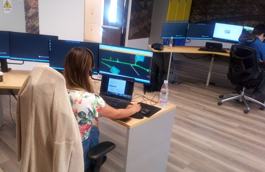 Sim School es una innovadora sala de clase con tecnología de última generación que permite -a quien opera- simular estar dentro del camión y telecomandarlo. En este primer curso, donde participan hombres y mujeres de una importante minera del norte del país, está siendo dictado por un instructor conectado desde Brasil.