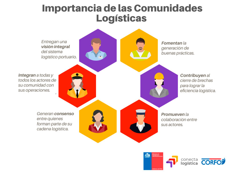 El trabajo realizado por el Programa de Desarrollo Logístico del Ministerio de Transportes y Telecomunicaciones (MTT), en el marco de su proyecto Conecta Logística, que es apoyado por Corfo, se divide en dos ejes. El primero se enfoca en los distintos pasos que debe seguir una Comunidad Logística para consolidarse, respecto a sus objetivos, estructura y planificación estratégica. Para ello, ya existe una guía con directrices elaborada por el MTT, la que se actualizará con la participación de las Comunidades Logísticas Portuarias existentes en el país.