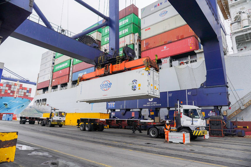 La motonave es la tercera nave de los servicios “Cherry Express” que incluye el embarque de cerezas -entre otros productos- y que este jueves seguirá su destino hacia Asia, al puerto de Nansha.