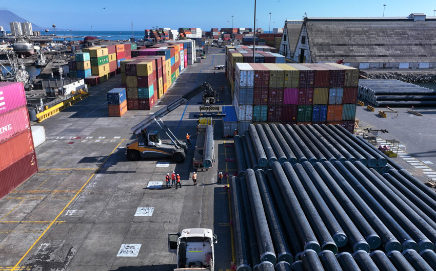 El proceso finalizó con la llegada de 11 mil tuberías -equivalente a 95 mil toneladas- las que fueron ingresadas a través del puerto de Iquique en una gestión coordinada con Iquique Terminal Internacional y transportistas locales.