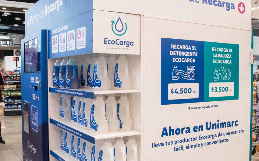 Dentro de las iniciativas promovidas por SMU y que buscan incentivar prácticas sostenibles en la compra de los clientes se encuentran el uso de envases retornables y la venta a granel de productos lo que se ve reflejado en los puntos Ecocarga de expendio de productos de limpieza como detergente, lavaloza o suavizantes.