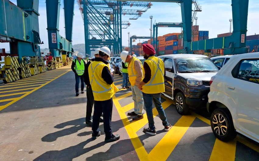 El equipo del área de calidad de Suzuki India realizó una visita a la nave Asian Dynasty de EUKOR, agenciada por Ian Taylor en el puerto de San Antonio, con el objetivo de supervisar la condición en la que arriban las unidades Suzuki a Chile y conocer en detalle el proceso que ejecuta la filial de Empresas Taylor, quien se encarga de recibir las embarcaciones y coordinar las operaciones logísticas en el puerto chileno.