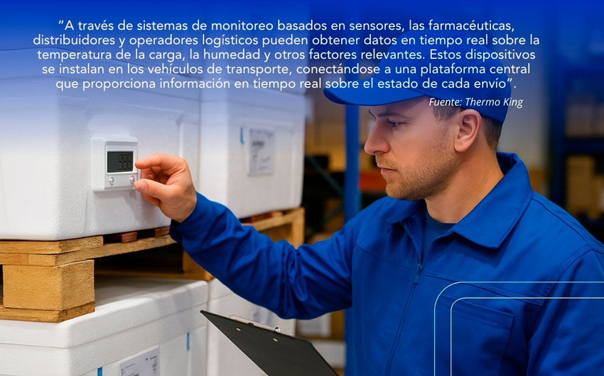 “A través de sistemas de monitoreo basados en sensores, las farmacéuticas, distribuidores y operadores logísticos pueden obtener datos en tiempo real sobre la temperatura de la carga, la humedad y otros factores relevantes. Estos dispositivos se instalan en los vehículos de transporte, conectándose a una plataforma central que proporciona información en tiempo real sobre el estado de cada envío”, señala el ejecutivo de Thermo King LATAM.
