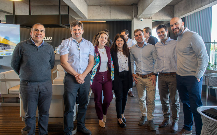 Pie de imagen foto: De izquierda a derecha están Claudio Chamorro, gerente general de Megacentro; Máximo Correa, director de transportes de Mercado Libre; Fernanda Echavarría, gerente legal de Mercado Libre; Catalina Fonseca, subgerente legal de Megacentro; Benjamin Videla, jefe comercial de Megacentro; Benjamin Matthews, gerente comercial de MiBodega; y Fernando Panic, gerente de operaciones de Megacentro.