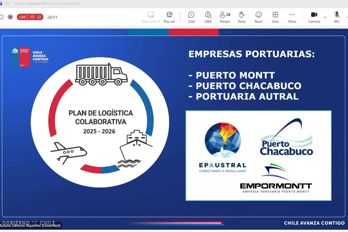 En una sesión ampliada del plan de logística colaborativa de la macrozona sur-austral, Emporcha expuso ante los sistemas logísticos de las empresas portuarias Austral, Chacabuco y Puerto Montt los avances de 4 iniciativas estratégicas que buscan modernizar la operación regional portuaria.