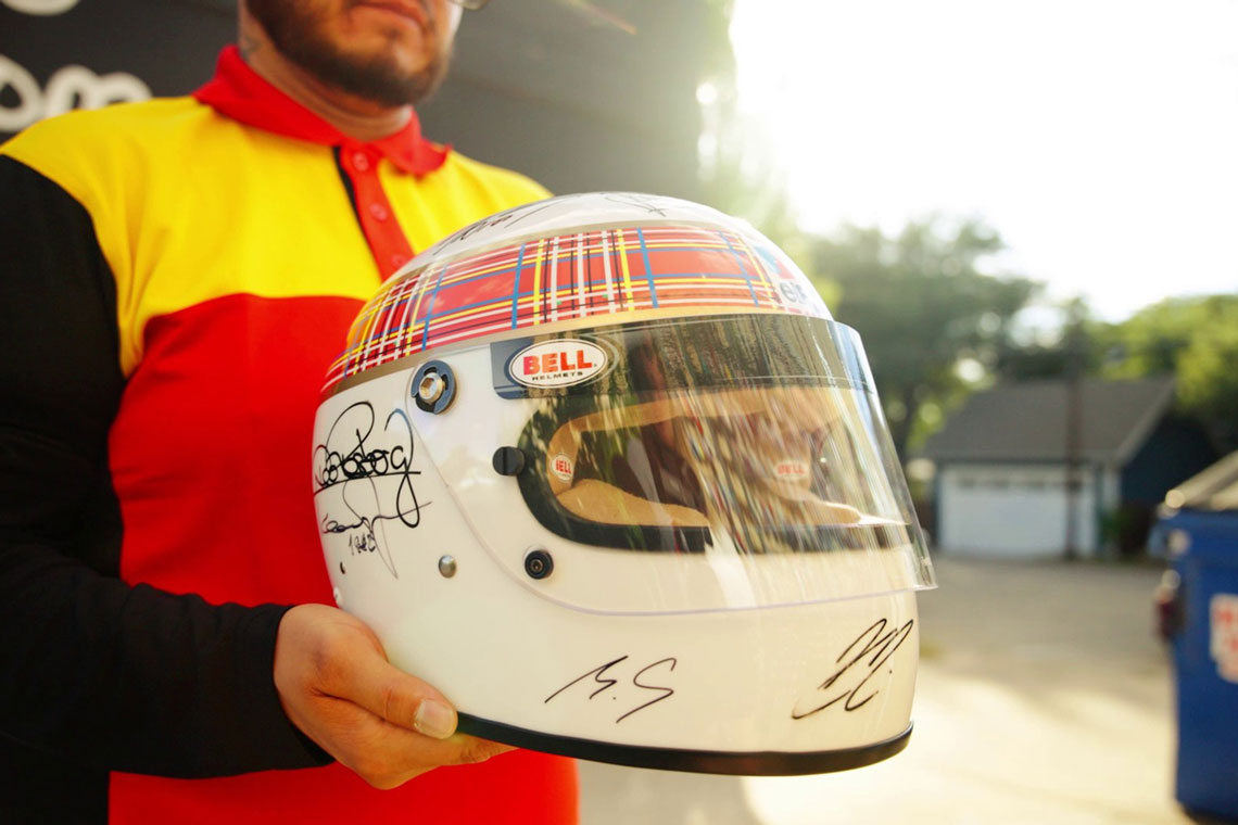 Bajo estrictas medidas de seguridad, DHL transportó el casco desde Suiza hasta los hogares de varios campeones para que pudieran añadir sus firmas. La ruta incluyó paradas en Ibiza – España, Londres – Reino Unido y Brasilia – Brasil.