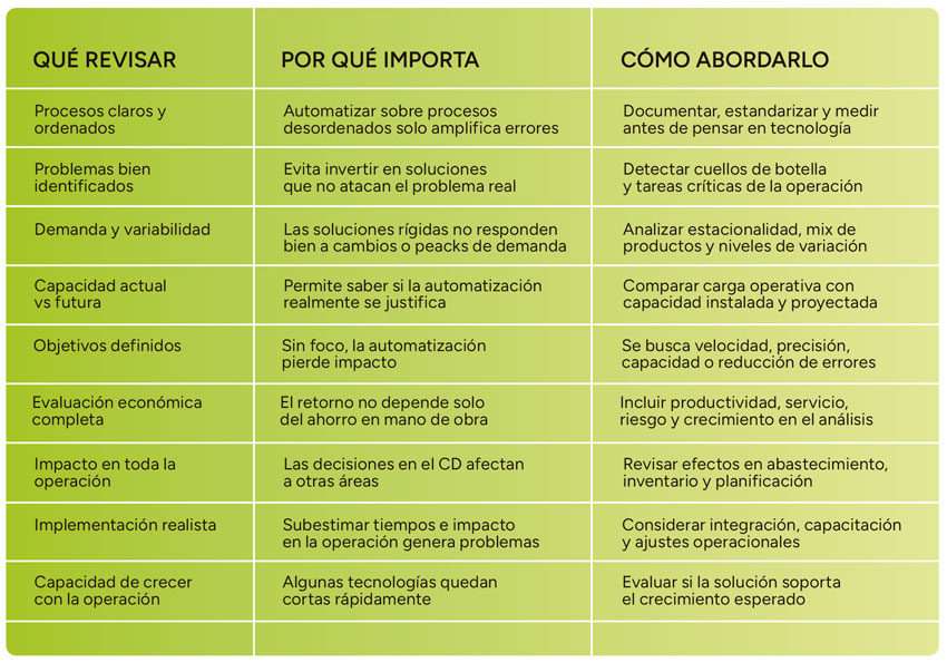 Diversos estudios del sector coinciden en algunos puntos clave a revisar antes de automatizar: